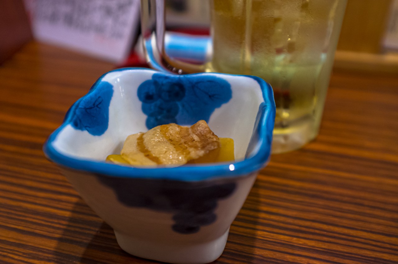お通しのタイミングで、お店からのサービスとして真蛸の頭が出されました。