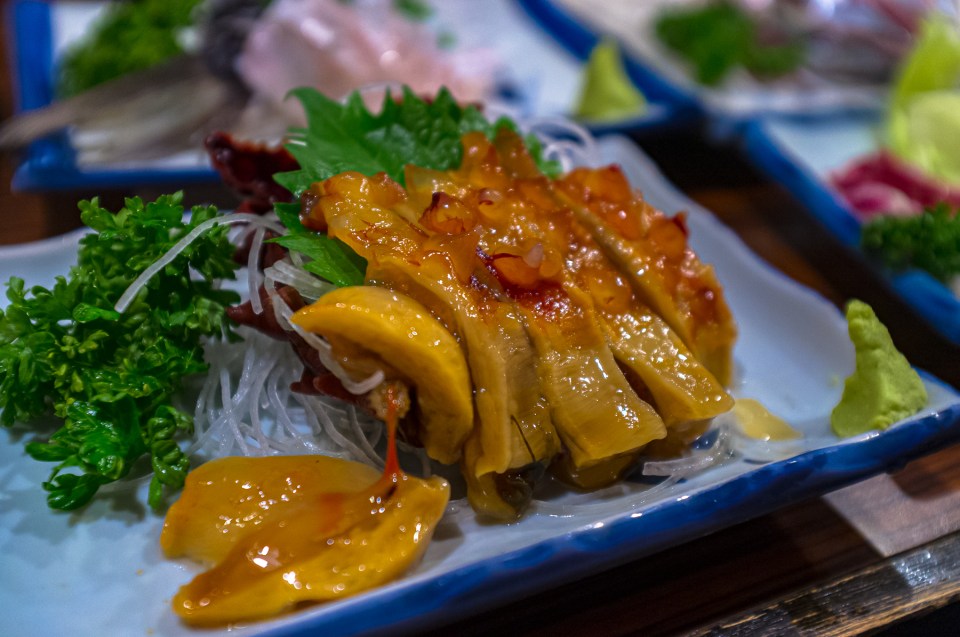 食べ方は何もつけないのが一番。海鞘のおいしさと、海の物である程よい塩気が口の中に広がります。