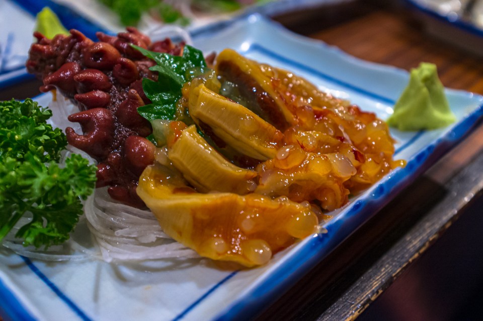 地元、そして昨日の魚一心では酢の物。しかしここでは海鞘刺しです。