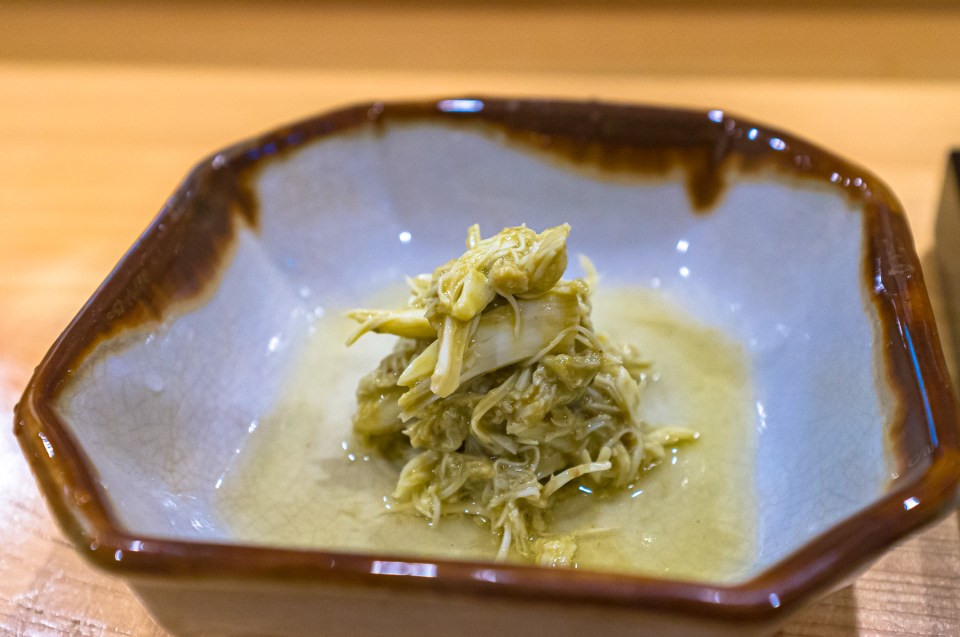 渡り蟹をほぐして、蟹味噌で会えたもの。