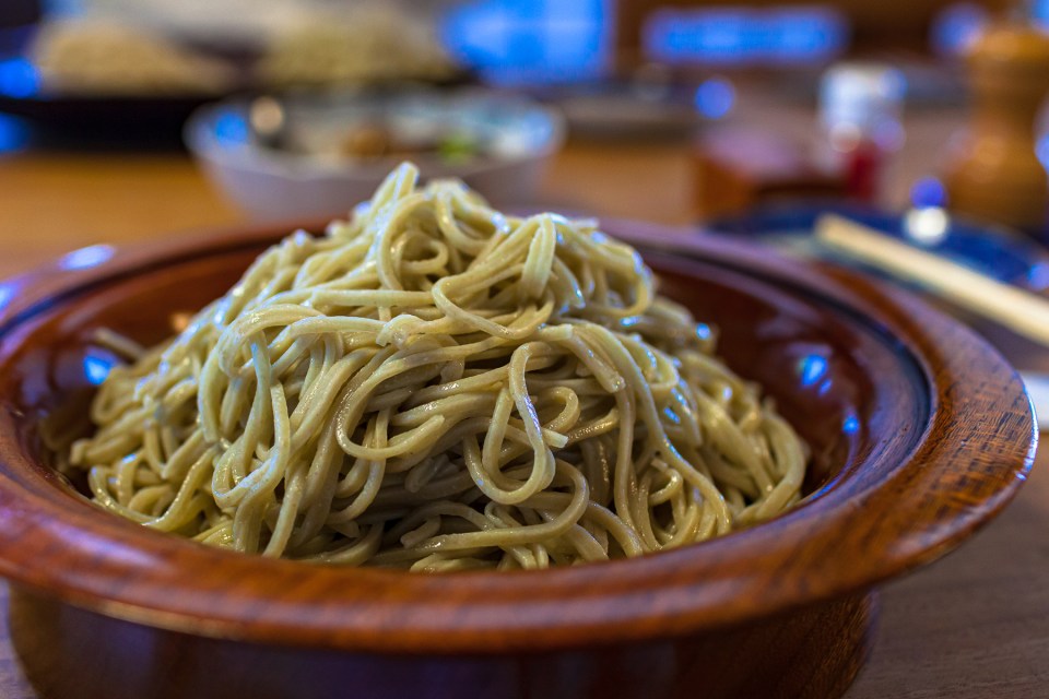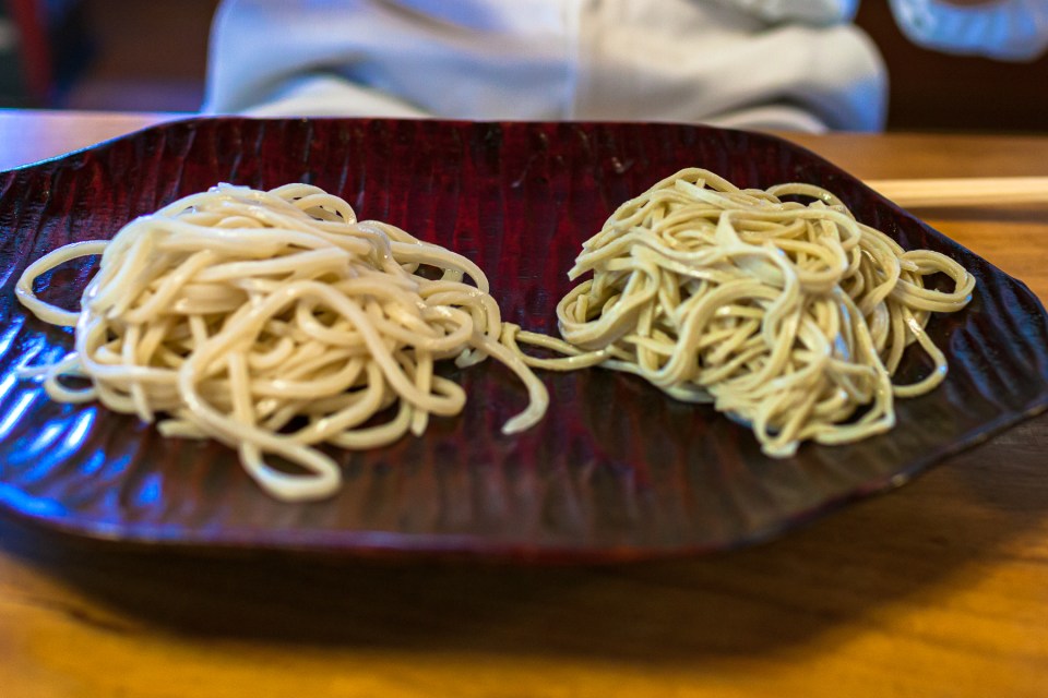 田舎蕎麦にしかピントが合っていなので分かりにくいけど、更科蕎麦は茹で上がり自体がボケた感じ。