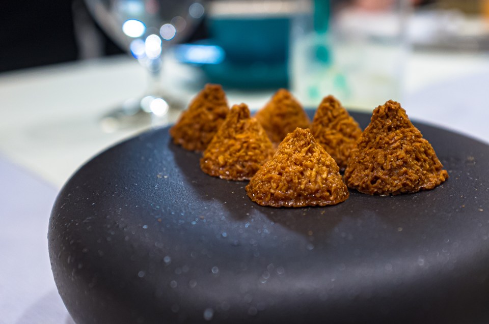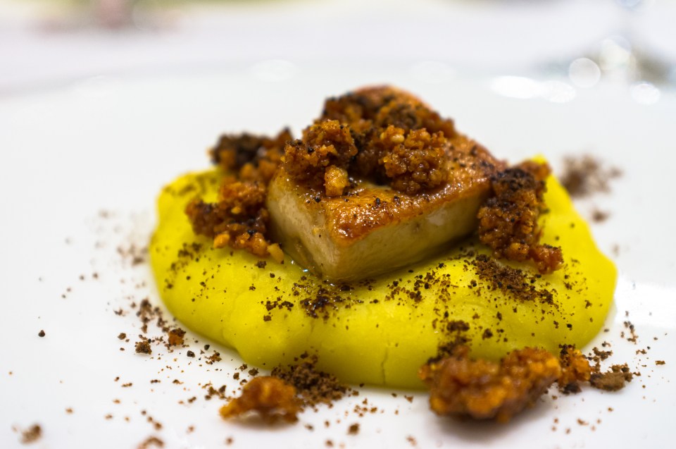 フォアグラのしっとり感と、降りかかっているグラノラのサクサク感。