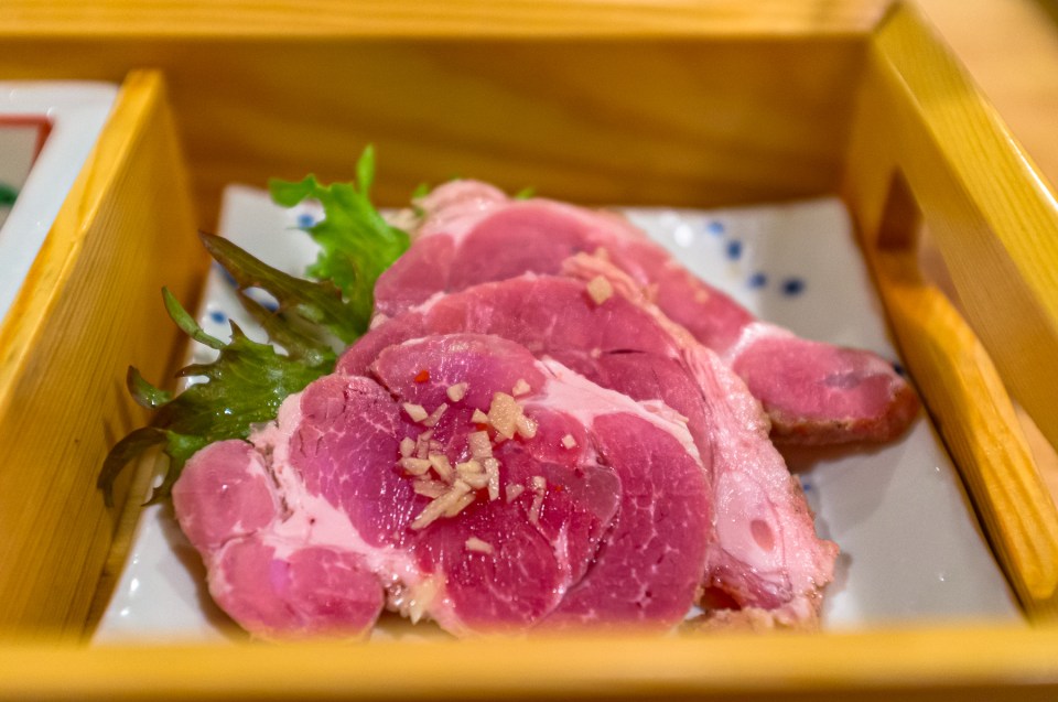 前回はお魚で今回はお肉。チャーシューの様な具材でした。
