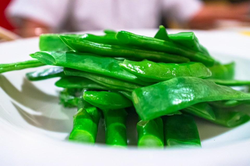エンドウ豆の炒め物。そして焼売。