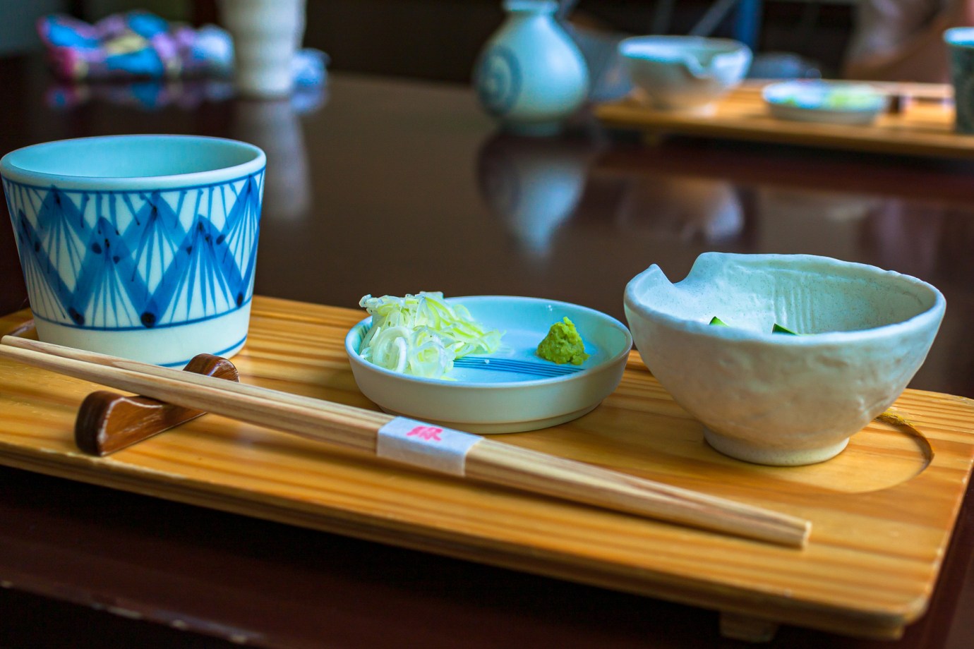そば猪口、薬味、香の物を、一枚の板に載せて持ってくるなどは、上手な演出ですね。