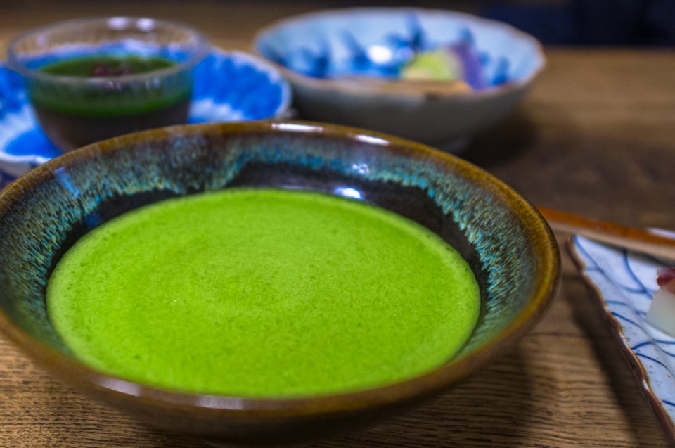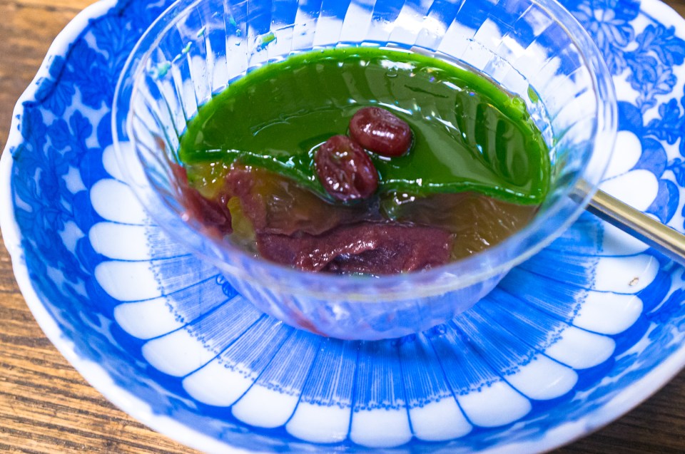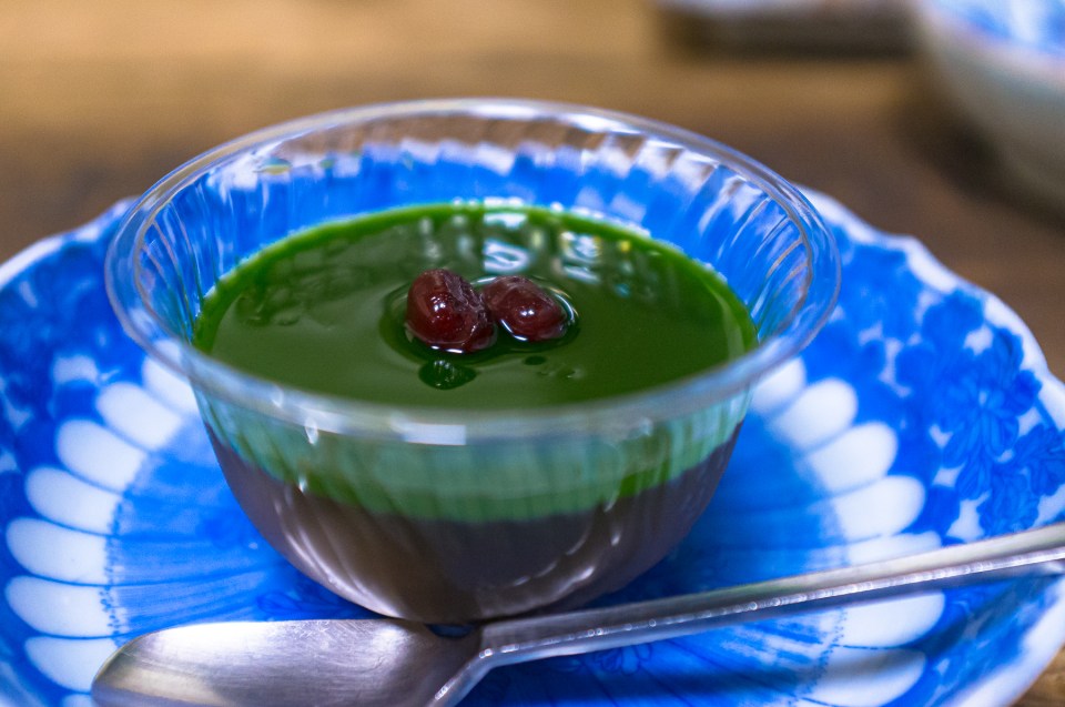 濃茶蜜、黒糖寒天とこし餡の重ね合わせが絶妙です。