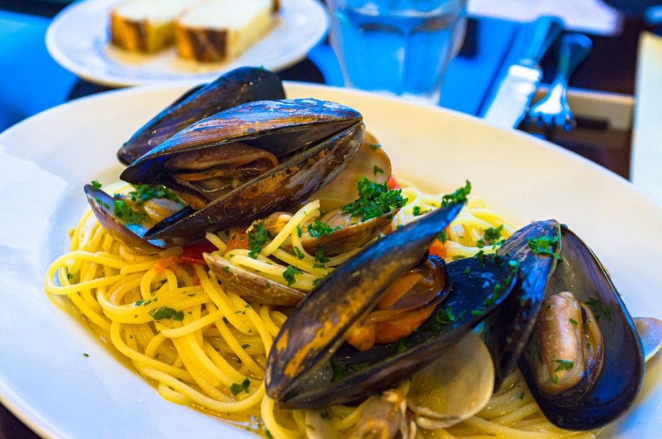 そして、パスタ。ムール貝が盛大に嵩上げに貢献しています。
