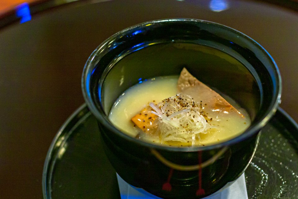 先付は粕汁。酒田のお酒、上喜元の酒粕と言っていました。