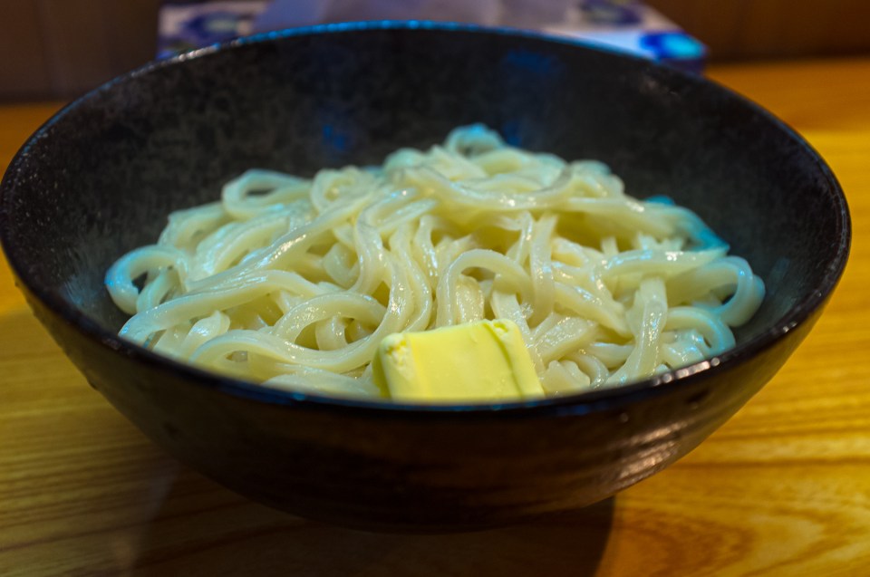 バターと醤油、そして饂飩に隠れていますがたまご。