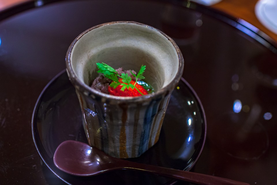 短角牛の肉のおいしさに、うまくフォアグラの味が絡まっていきます。
