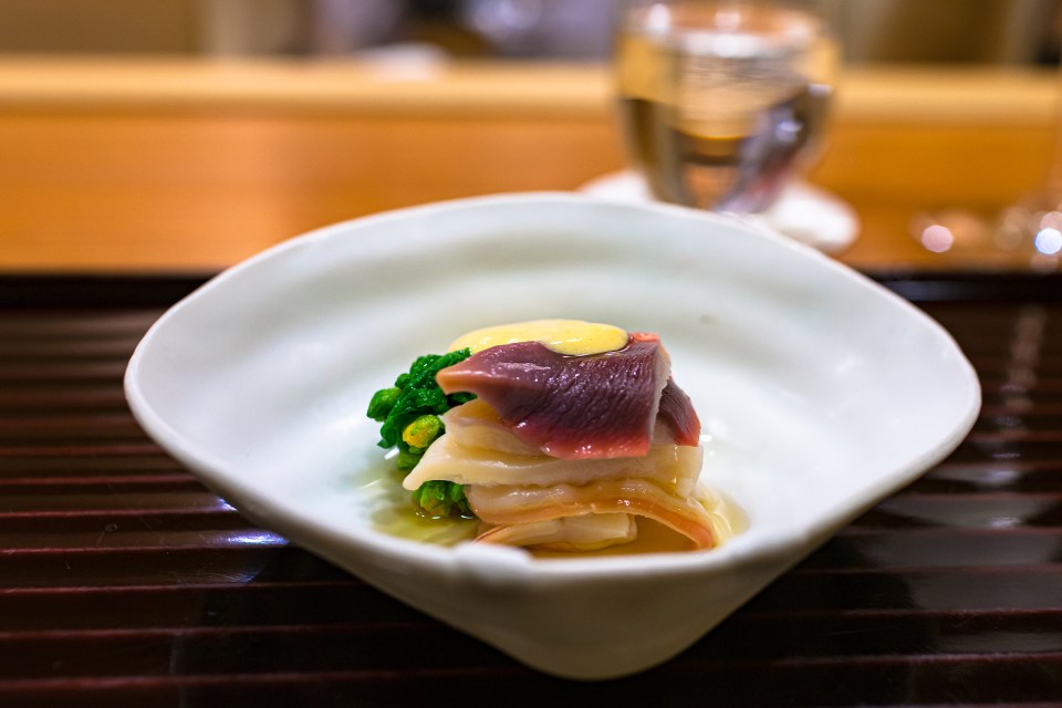 . 炊合せ 和牛独活(うど)三つ葉小鍋