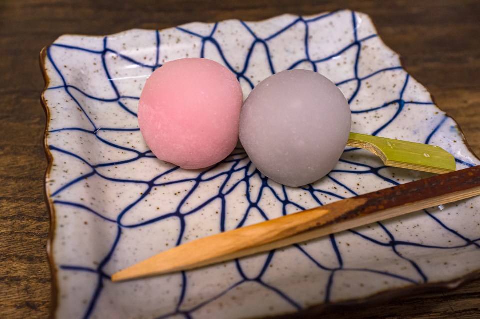 花見だんご (外郎製 紅餡、小豆こし餡)