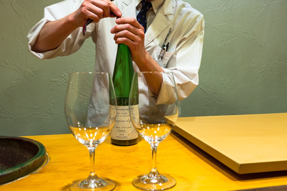 今回持ち込ませてもらったのは、小布施ワイナリーの作る日本酒、Sogga pere et fils