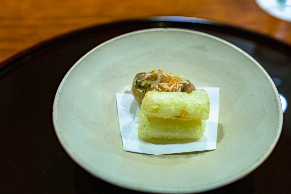 . 進肴 岩沼の白アスパラと秋田の甘鯛の揚げ物