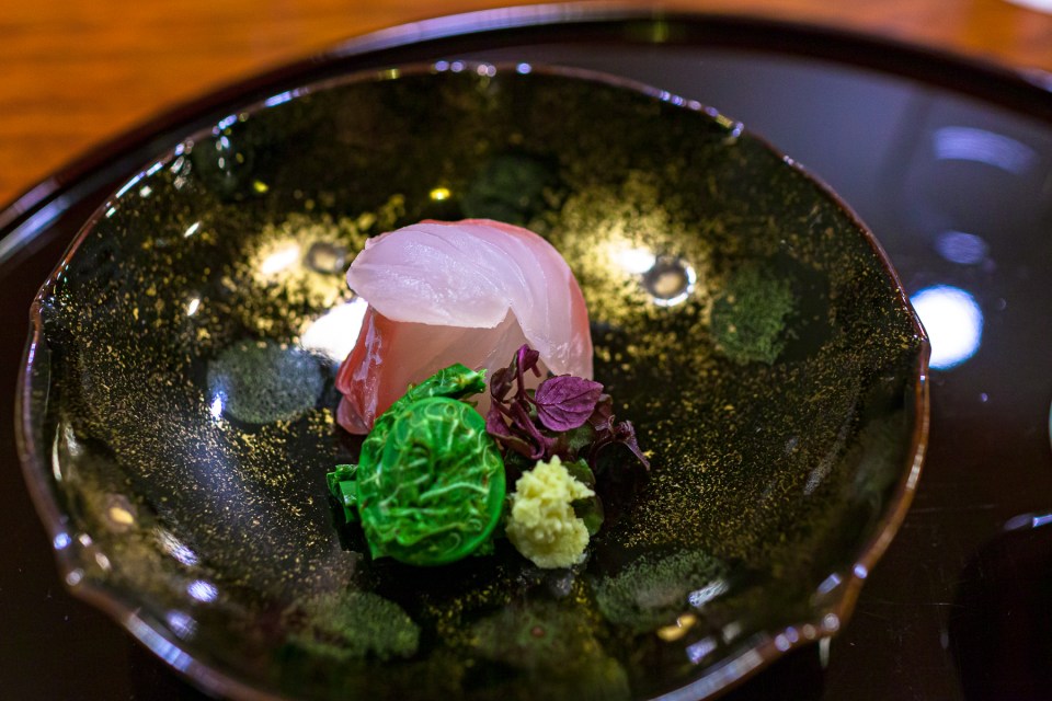 焼き上げて餡を垂らしたキンキには、肝が載せてあります。