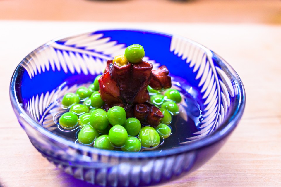 蛸もおいしかったのですが、エンドウ豆のおいしいこと。