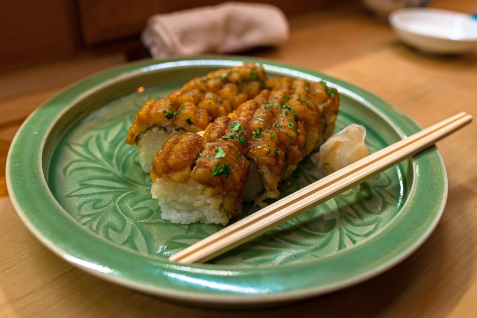 黄身で揚げています。その香ばしさを海苔の香りが相まって、よりおいしくしてくれています。