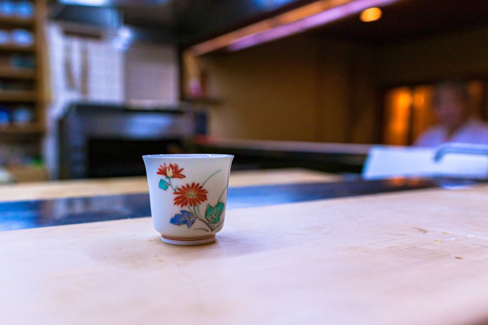 炊合せの器の話をしていましたら、お姉さんがお猪口を出してくれました。