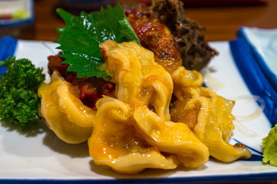 地元ではほや酢でしかお目にかかれないのですが、こちらではほや刺しです。