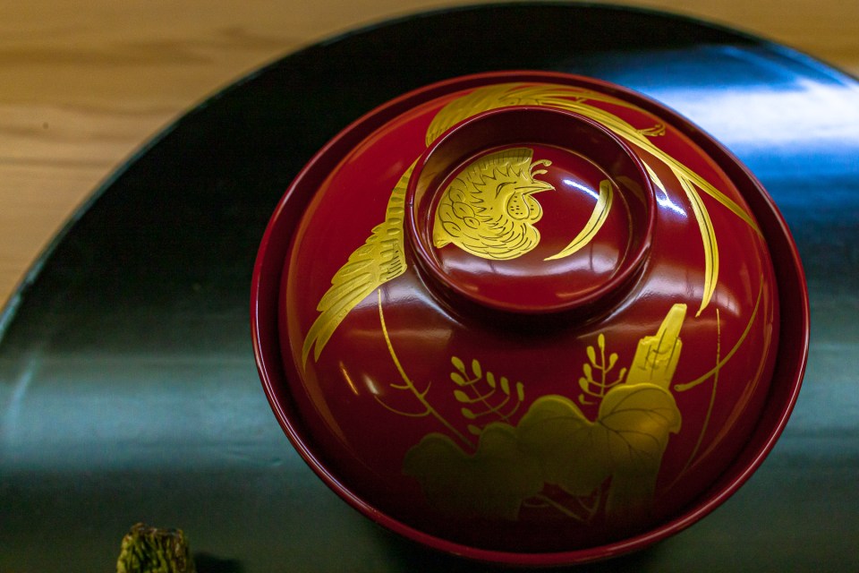 先ずこの艶やかな、この漆塗りの器の素晴らしさ。