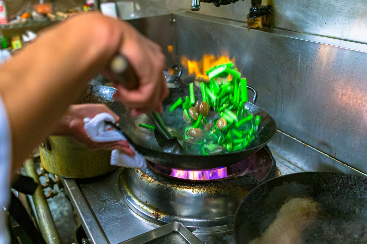 中華鍋を振るって炒めるところを撮影したのが冒頭の画像。