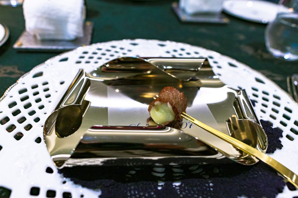 トリフ風味のマッシュポテトを山形牛で巻いたもの。