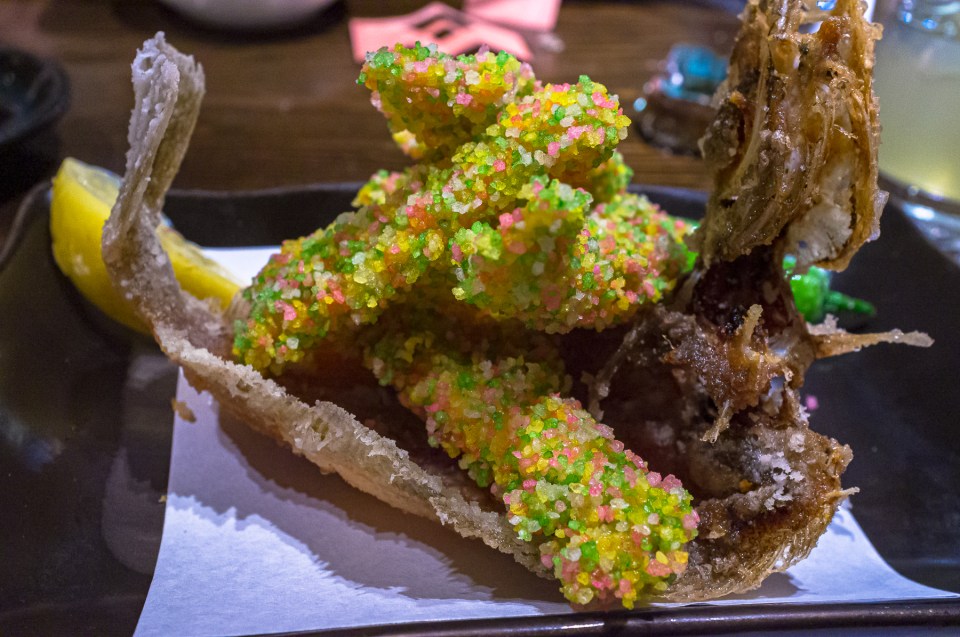 アラレをまぶした身の部分もおいしいのですが、何と言っても骨せんべいが最高。