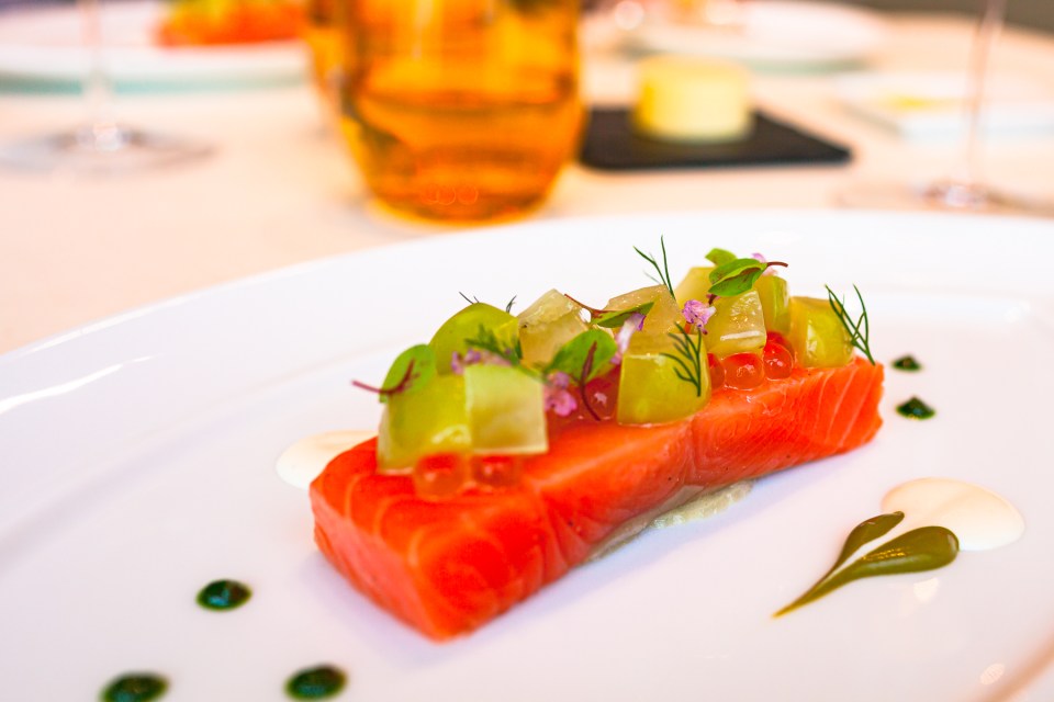 サーモンが清らかな優しい味で乗っているマスカットの甘みと良く合っています。