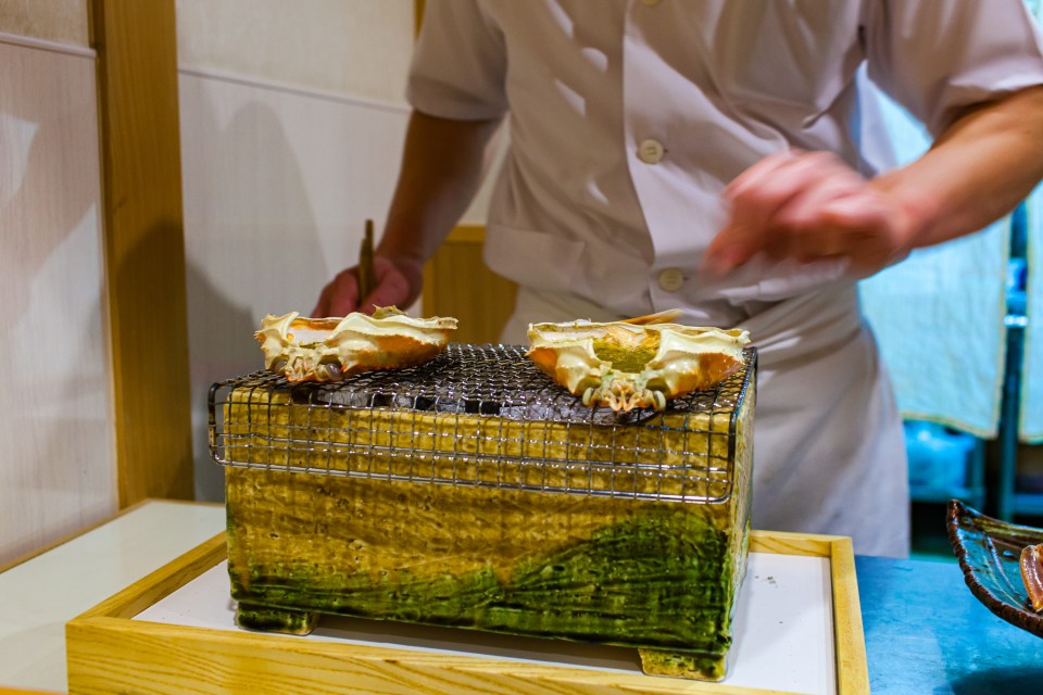 プリプリとして、ほのかな自然の甘さを感じることができる焼き蟹。