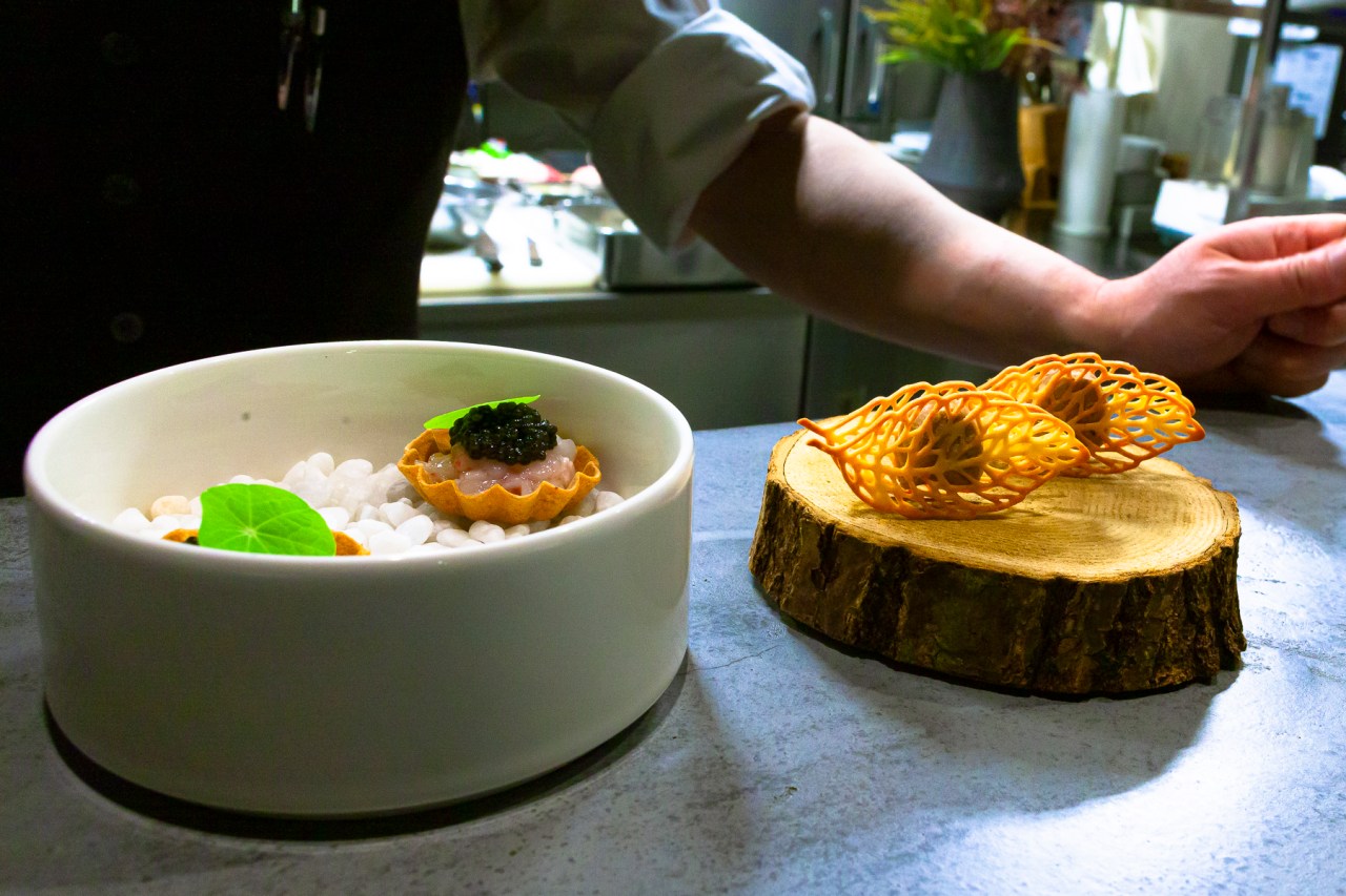 タルトは、沢山載せてくれたキャビアもさることながら、タルトに練りこんだ赤エビのパウダーが良い仕事をしています。