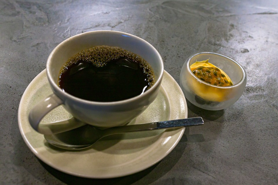 ちょっと濃いめの芒果のムースがコーヒーに良く合います。