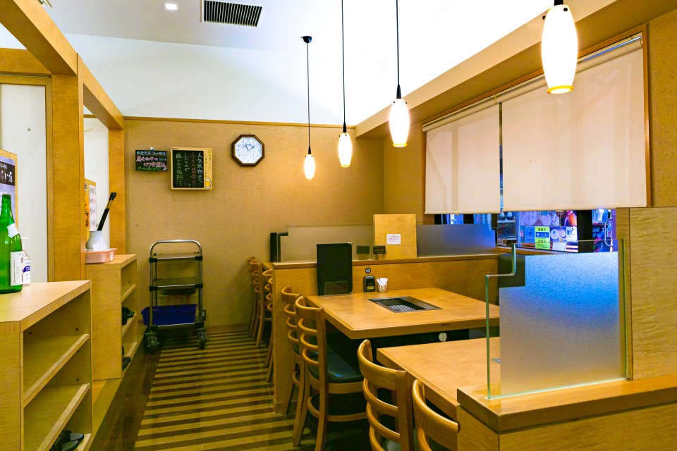 四人掛けのテーブル席が4卓。掘りごたつ形式の座敷が2卓。