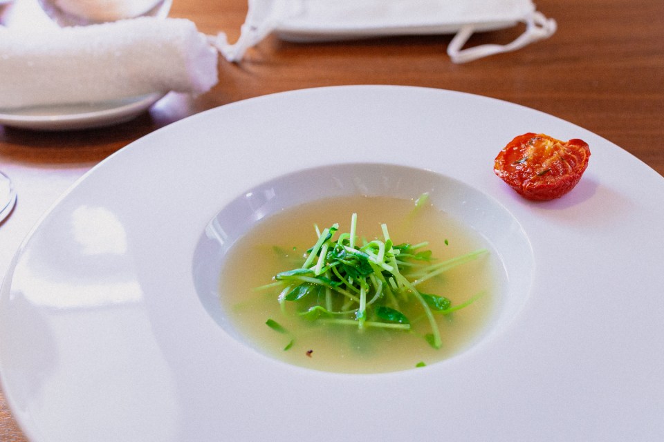 一皿目は羊のスープ。捌いた羊の骨でフォンを取ったもの。